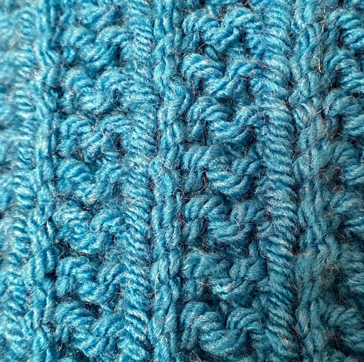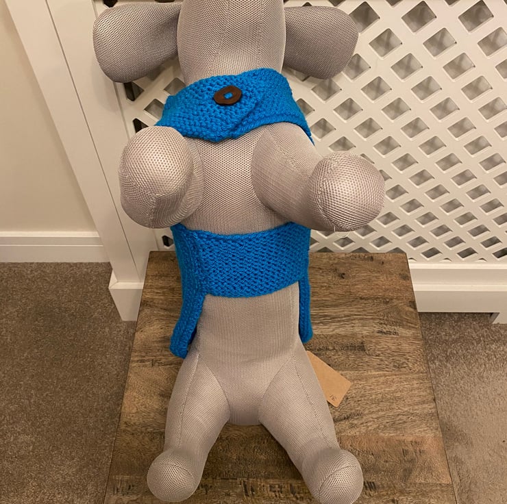 Hand knitted in Paintbox Chunky - Kingfisher Blue 100% Acrylic. Care instructions Hand WashMachine Wash, Dry Flat