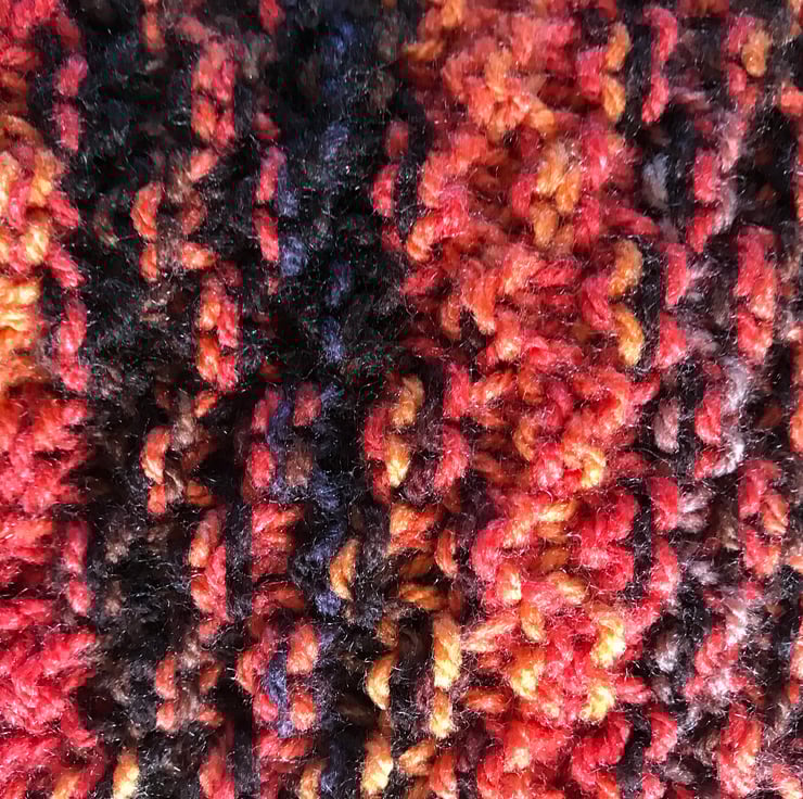 Hand knitted in Schachenmayr Bravo Color - Colour Vesuv.