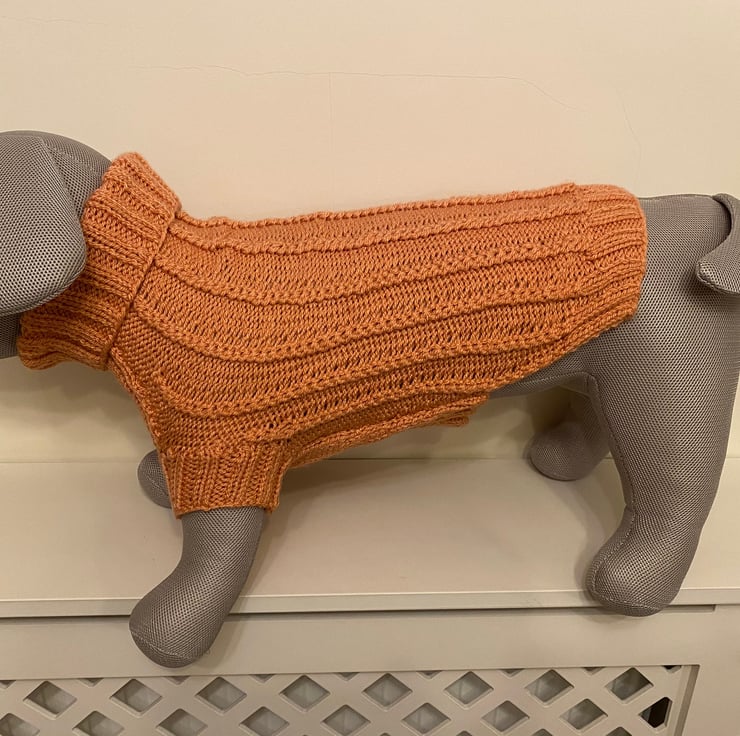 Dog Jumper - Medium - Ideal for Spaniels or similar-sized breeds of dog. Hand Knitted in a Twisted Rib Stitch with a Roll Neck.
