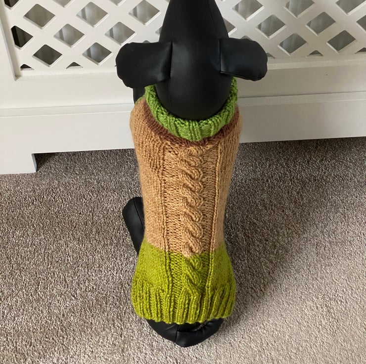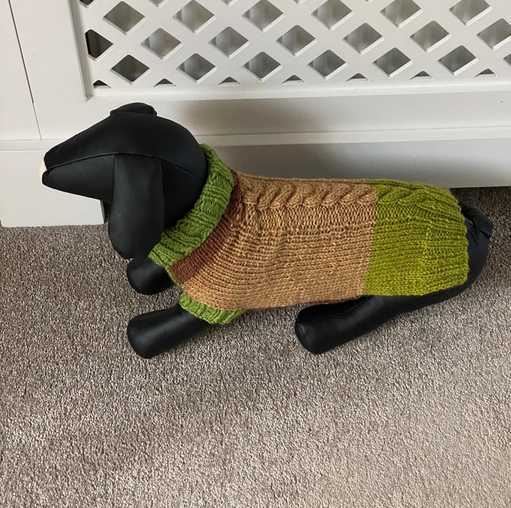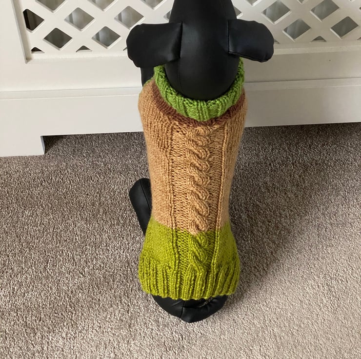 Dog Jumper - Ideal for a Miniature Dachshund or Small Dog, Hand Knitted Jumper with a Single Cable Running down the back and a Roll Neck.