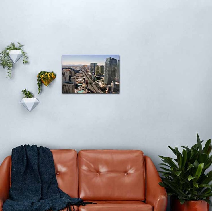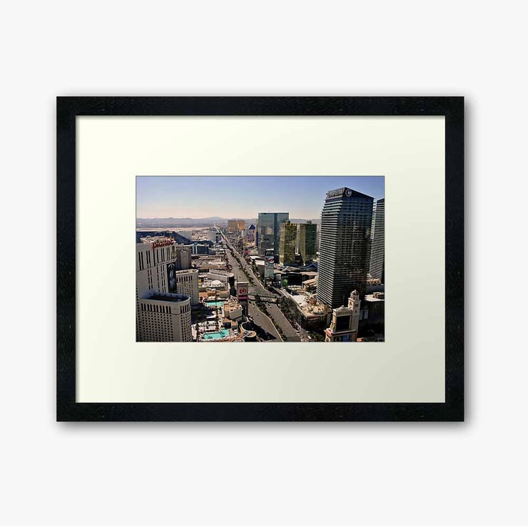 Cityscape skyline of the Las Vegas Hotels along the strip from the top of the Eiffel tower at the Paris Casino Nevada United States of America USA a photographic print photography by Andy Evans Photos