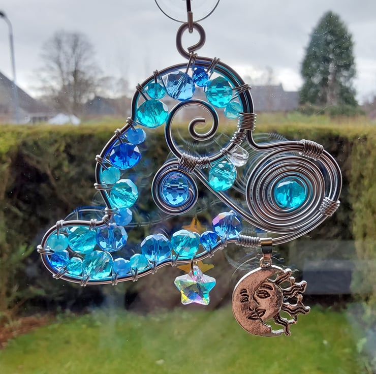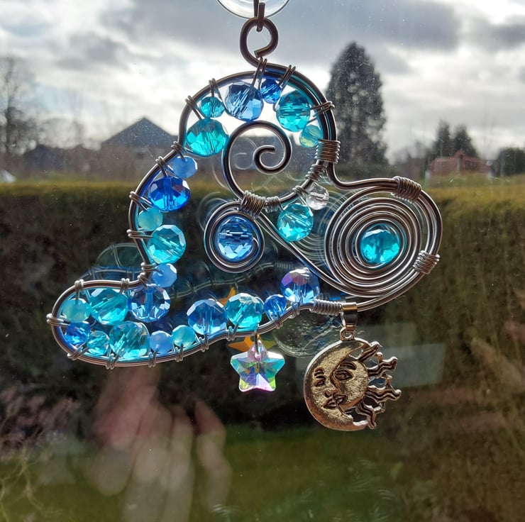 It is made from mixed metal, crystal glass faceted beads, a crystal star and a sun and moon charm.