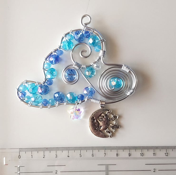 This unique wire art cloud in blue and turquoise would make a beautiful gift for any occasion.