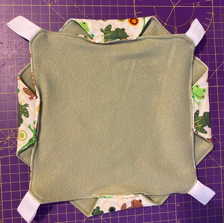 The inside is made from a soft fleece, and the outside a patterned cotton.