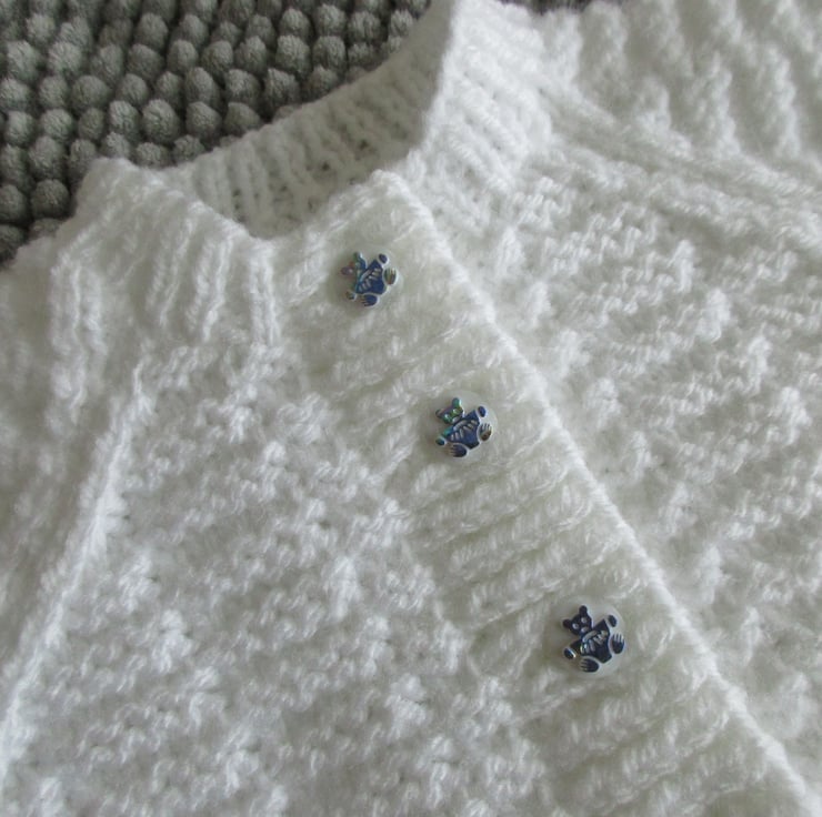 Fastening with 6 small shank buttons with raised foil teddy (Girls way)