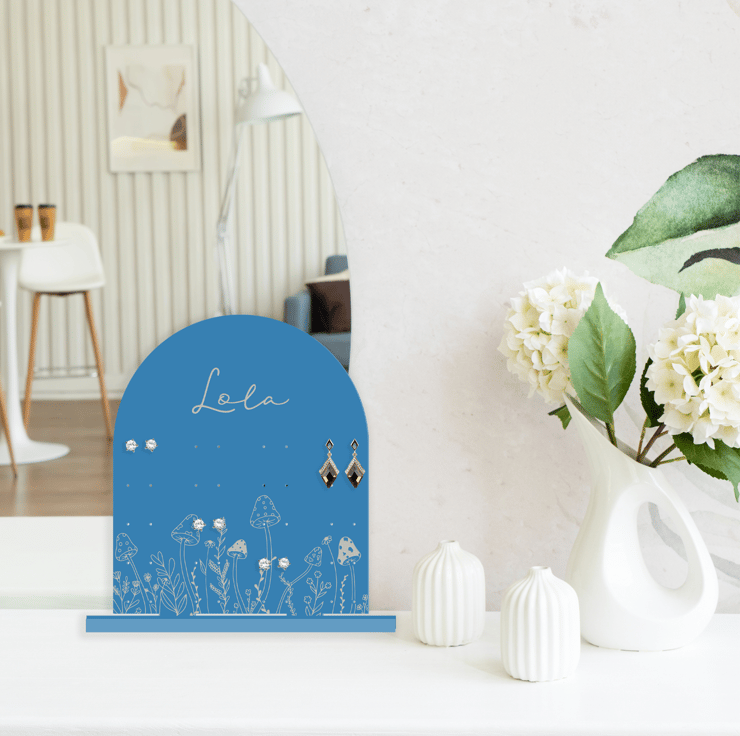 Welcome to our enchanting floral garden! Keep your earrings beautifully organised and elegantly displayed with our personalised earring holder. Crafted with care and adorned with a delightful floral garden design, this holder is not only functional but also a charming addition to your vanity or dresser. Bring a touch of nature's beauty into your daily routine and add a personalised touch to your jewellery display with our charming floral garden earring holder. Order yours today and let your earrings bloom in style!