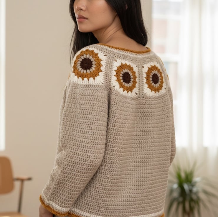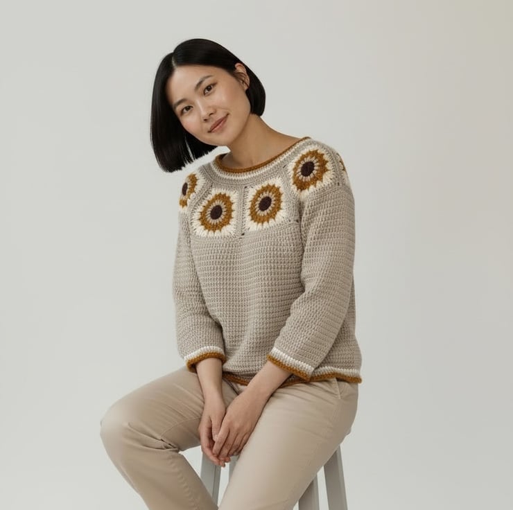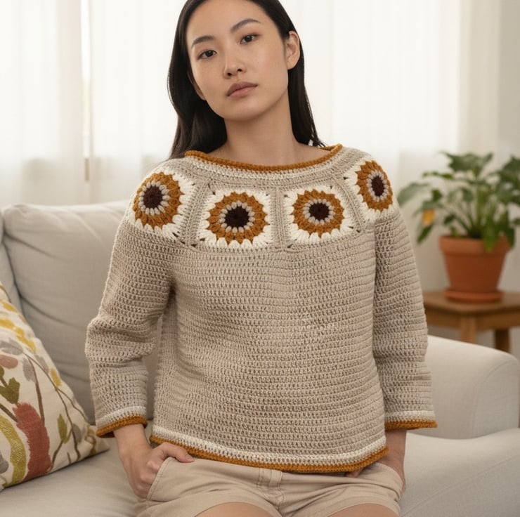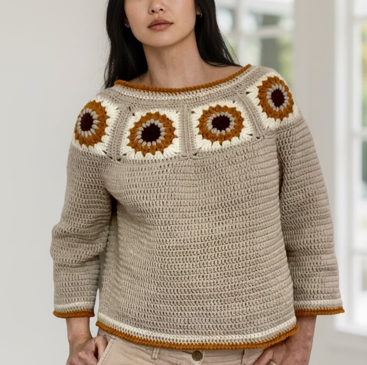 Crochet Sunflower Granny Square Sweater.
