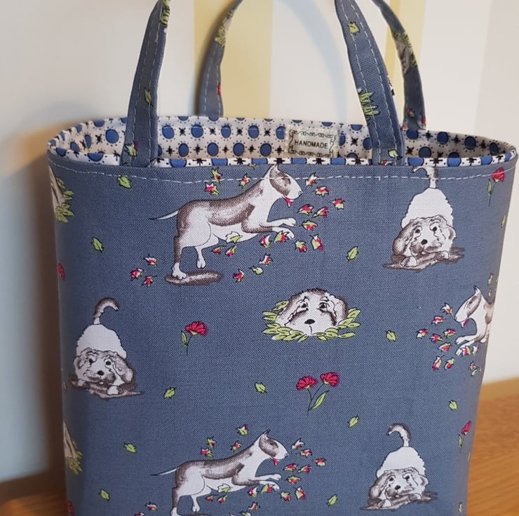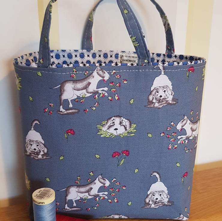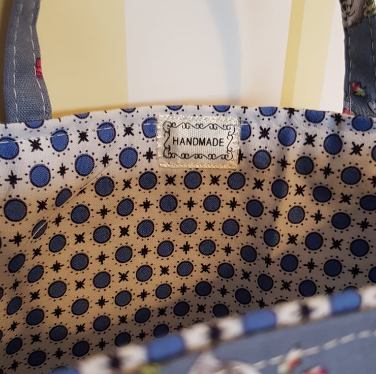 Handsewn by me with cotton fabric it is lined and interlined so will keep its shape. And it can be used to keep something in so has a future use too.