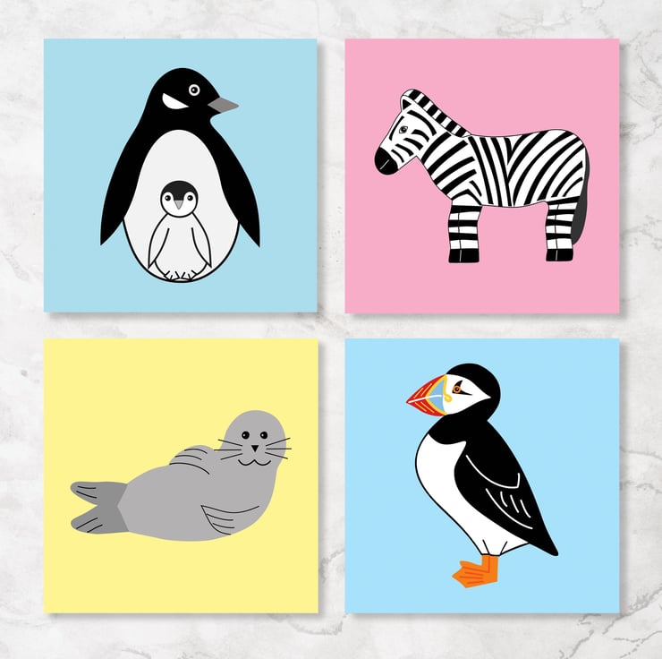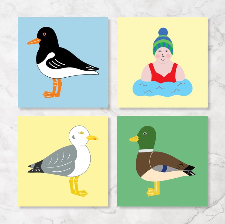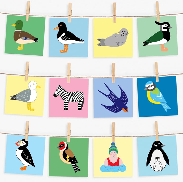 Choose from: Penguin, Lapwing, Oystercatcher, Seal, Puffin, Seagull, Goldfinch, Mallard, Blue Tit, Swallow, Zebra and a Wild Swimmer.