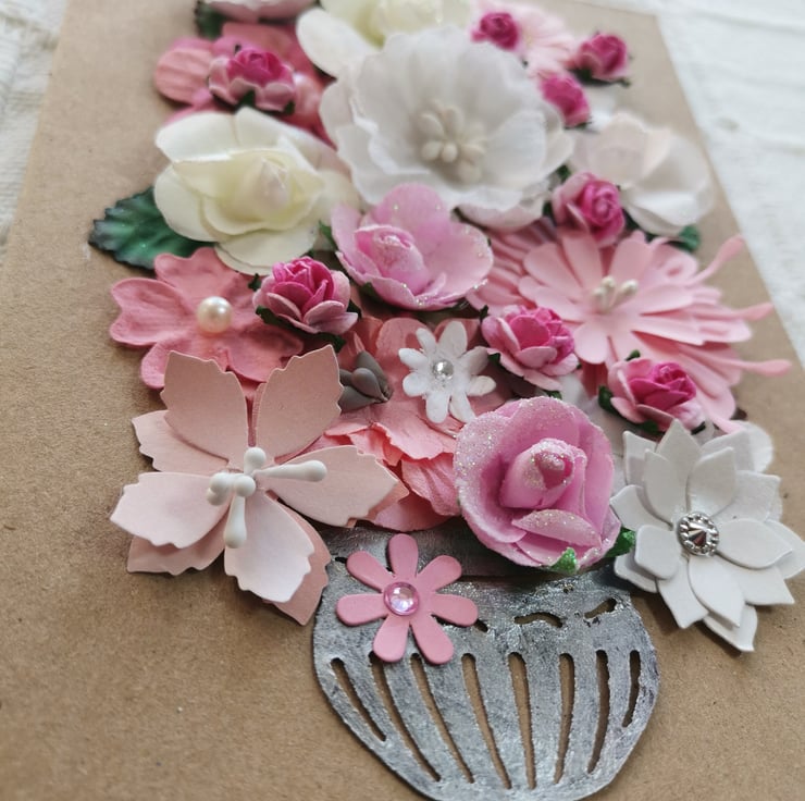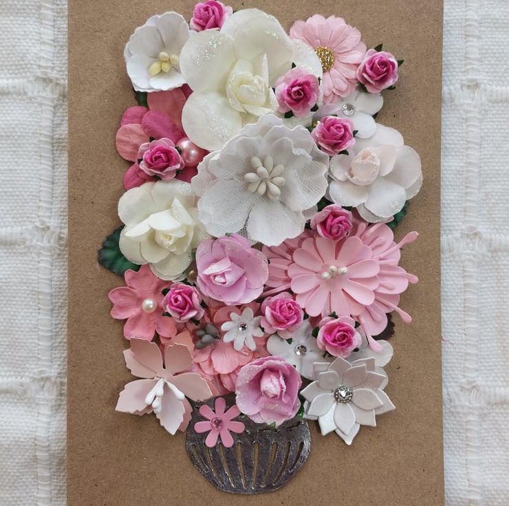 Pink & white flower keepsake card,  paper flowers, Greeting Card