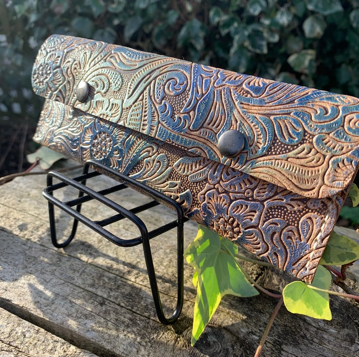 This multi purpose embossed leather pouch is both useful and stylish and the perfect gift.