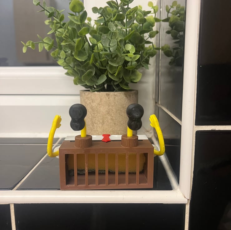 Introducing our SpongeBob sponge holder, a charming and practical accessory for your kitchen sink. This holder features opposable arms and legs that hang over the edge of the sink, providing a whimsical and functional way to keep your sponge within reach. With built-in drainage holes, it allows excess water to drip away, preventing the sponge from staying soggy. Add a touch of SpongeBob SquarePants fun to your kitchen and keep your sponge organised with our delightful sponge holder.