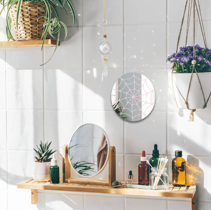 Elevate your home decor with a spider web mirror. The intricate web design adds a unique and intriguing element to your living space, combining artistry with functionality. This mirror not only reflects light beautifully but also weaves a sense of sophistication into your room, making it a striking and distinctive addition to your home.