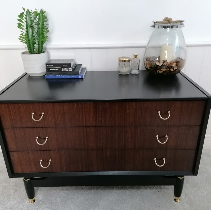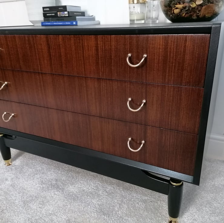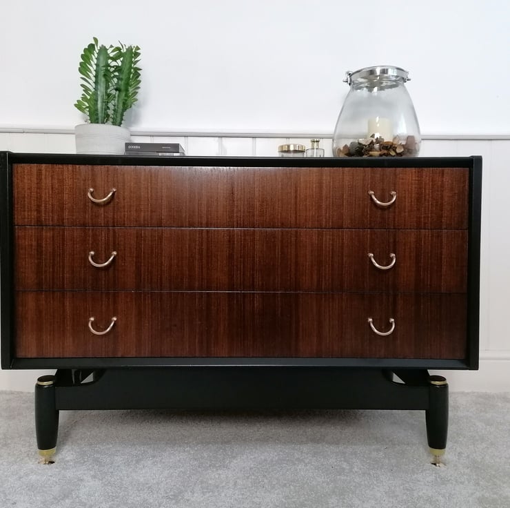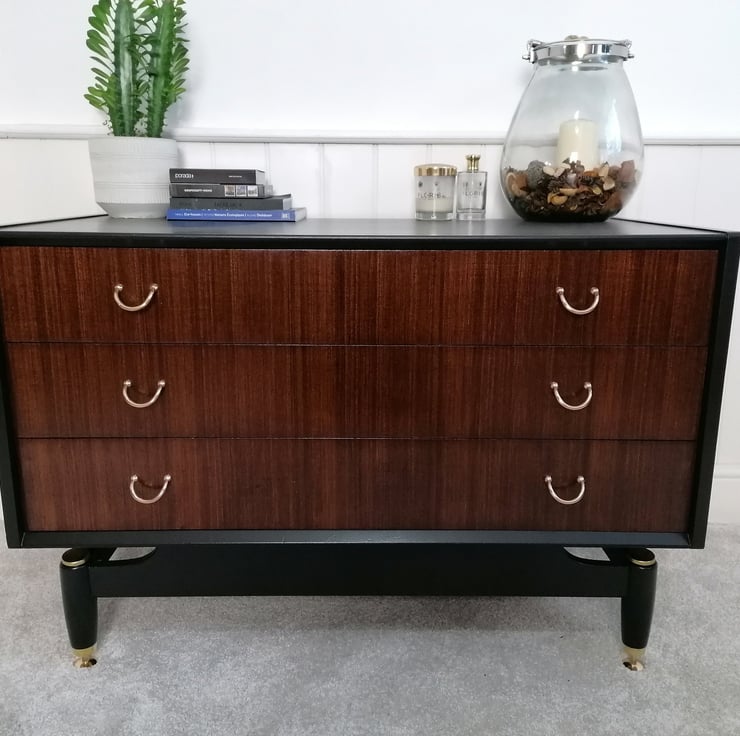 G Plan Chest of Drawers in Black, Walnut and Gold