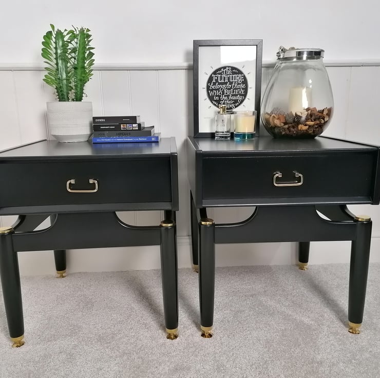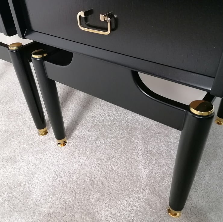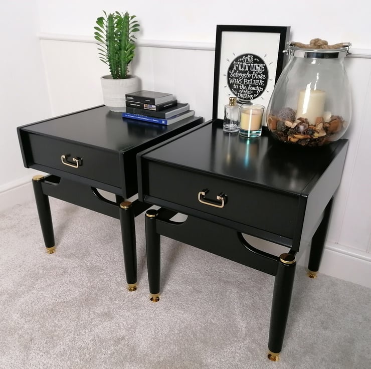 Pair of G Plan Bedside Tables in black, gold and Walnut
