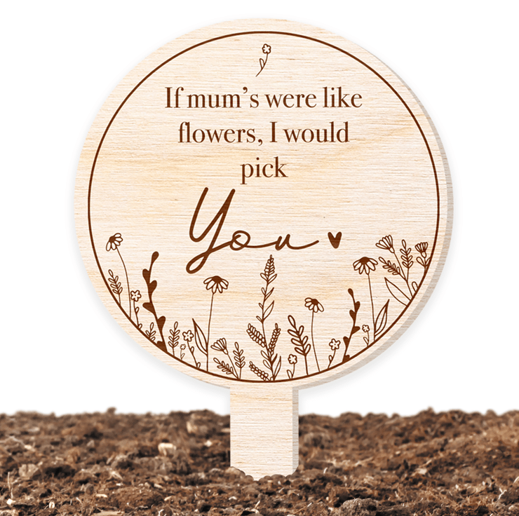 Beautiful Wooden Plant Tag: "If Mums Were Flowers, I Would Pick You"