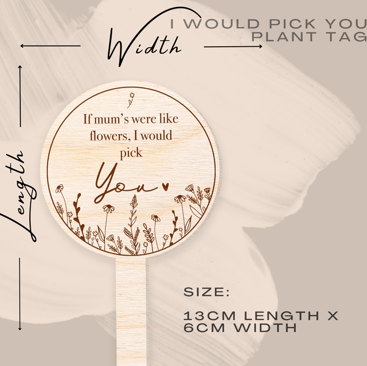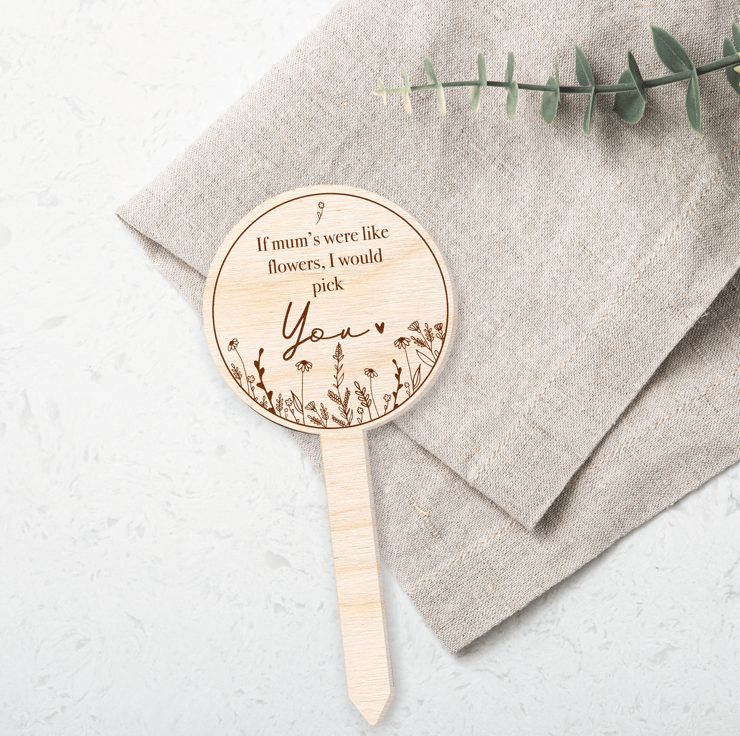 Looking for a heartfelt gift to show your mom just how much she means to you? Look no further! This adorable wooden plant tag is the perfect way to express your love and appreciation. Handcrafted with care, this charming plant tag features the sweet sentiment: "If Mums Were Flowers, I Would Pick You." It's a lovely reminder of the special bond between mother and child, sure to bring a smile to her face every time she sees it.