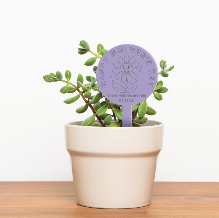 Celebrate the nurturing presence of your mum with our "Thank you for helping me grow" engraved acrylic plant plaque. This Mother's Day, give her a unique and heartfelt gift that beautifully complements her love for plants.