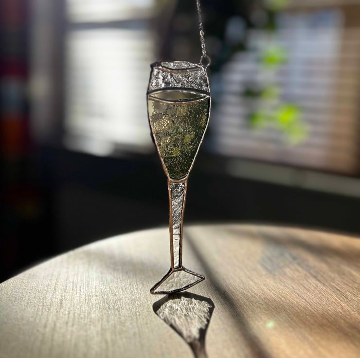 This beautiful everlasting Prosecco glass suncatcher is handcrafted and carefully designed to capture the sparkle and elegance of a traditional glass of prosecco.