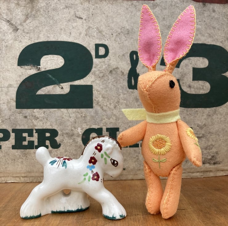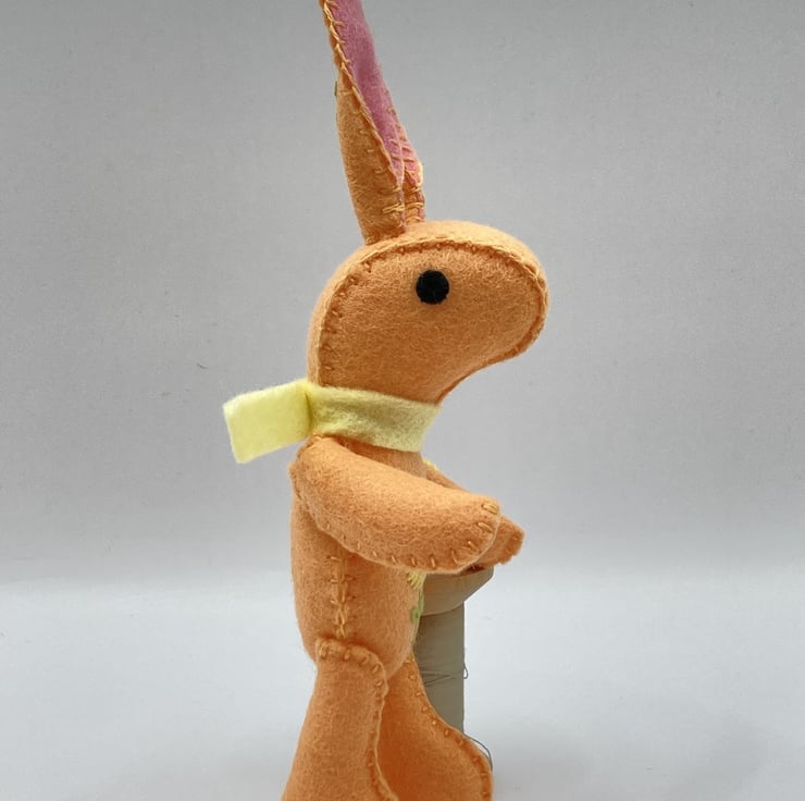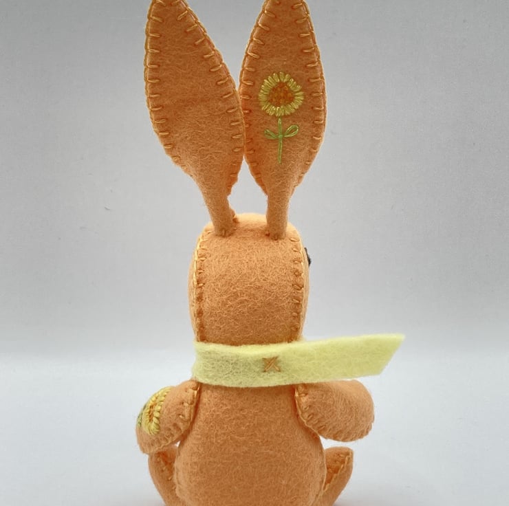 Pastel Orange Bunny stands approximately 18.5cm tall from the tip of their ears to their toes, a little pocket sized friend.