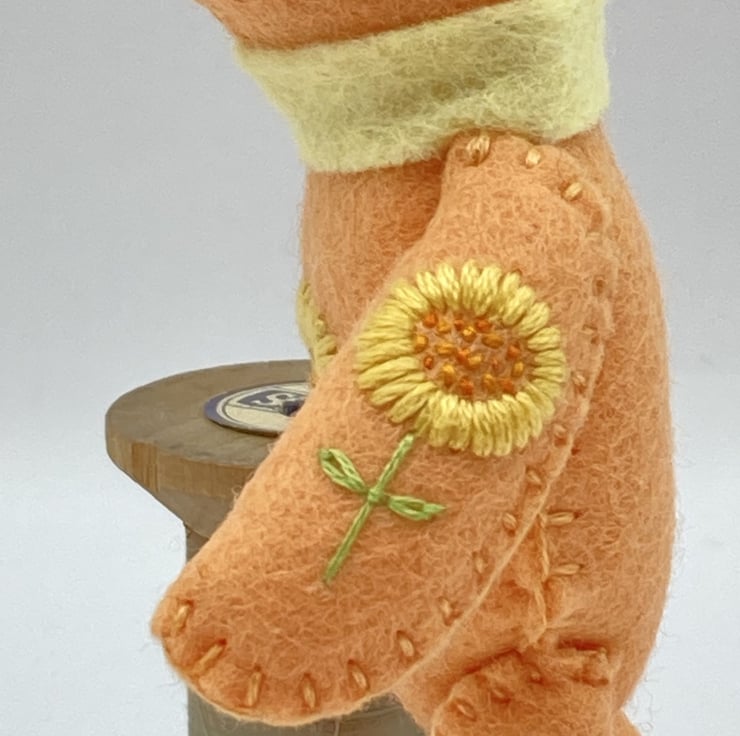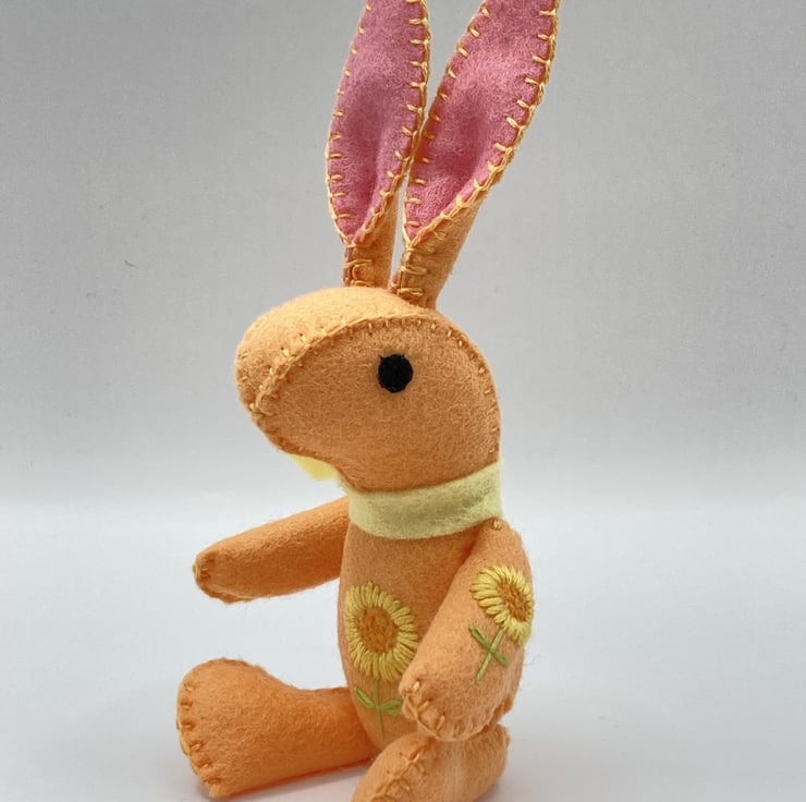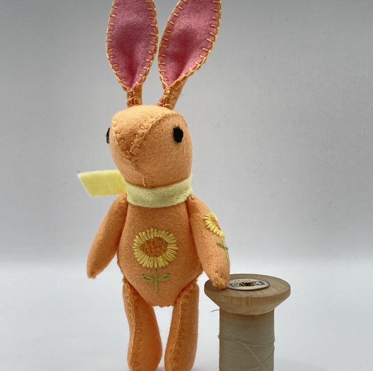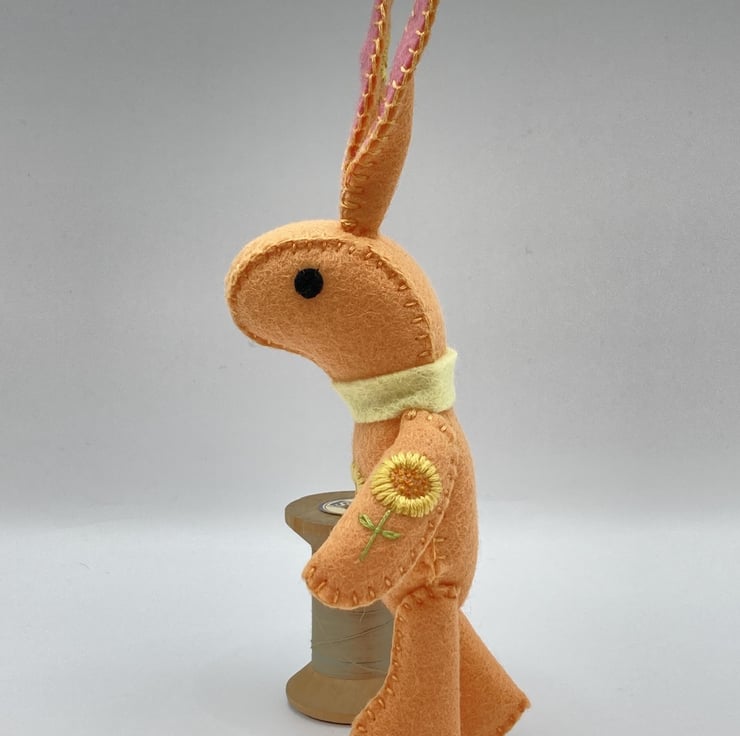 I have used pastel orange wool felt to make Bunny’s body which I have lovingly filled with regulation Hi-Loft polyester toy stuffing.