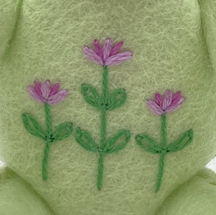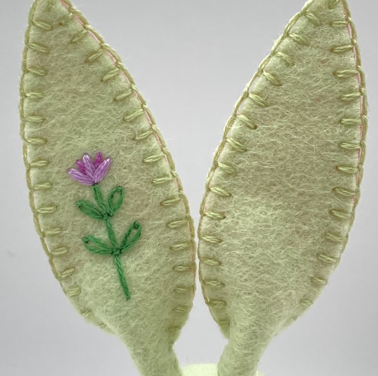 Bunny is completely hand embroidered by myself using various stitches, making them unique.