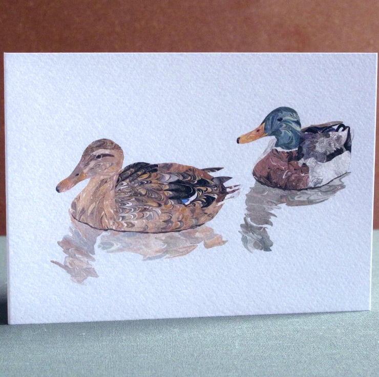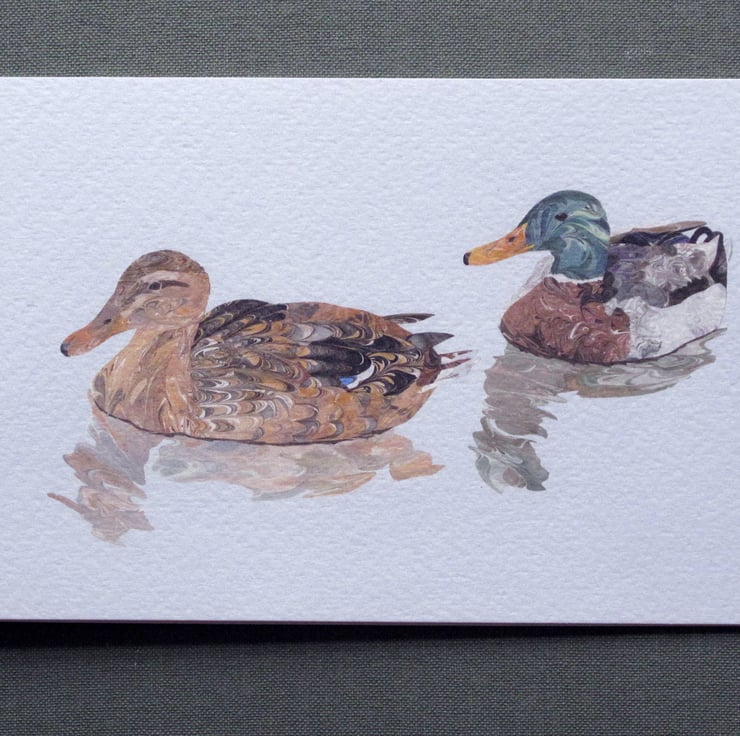 My friend and I had an exhibition about the birds of Redesmere in Cheshire. I made a series of drawings and then adapted them into images created with collage. I made some marbled paper creating patterns that made me think of feathers and the used them to make my birds.