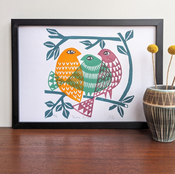 Handmade original Linocut printed onto white 300gsm acid-free paper using gorgeous vibrant inks.