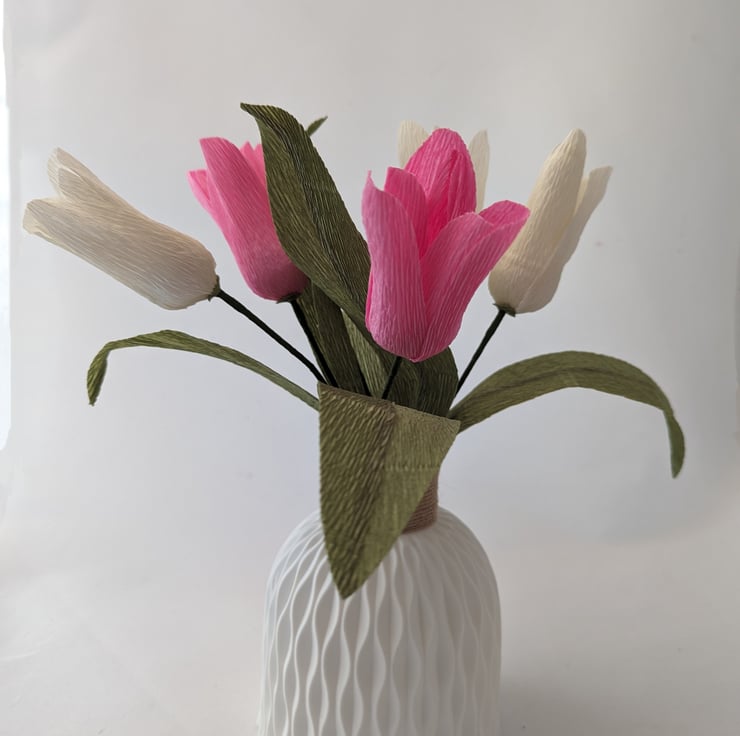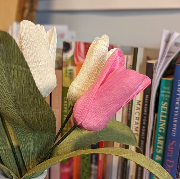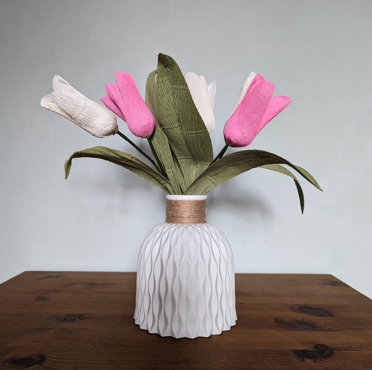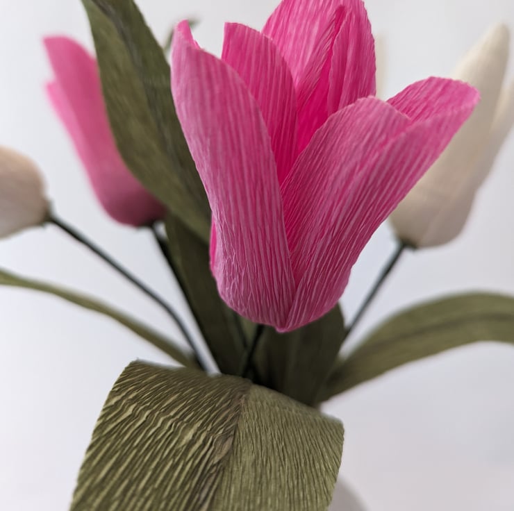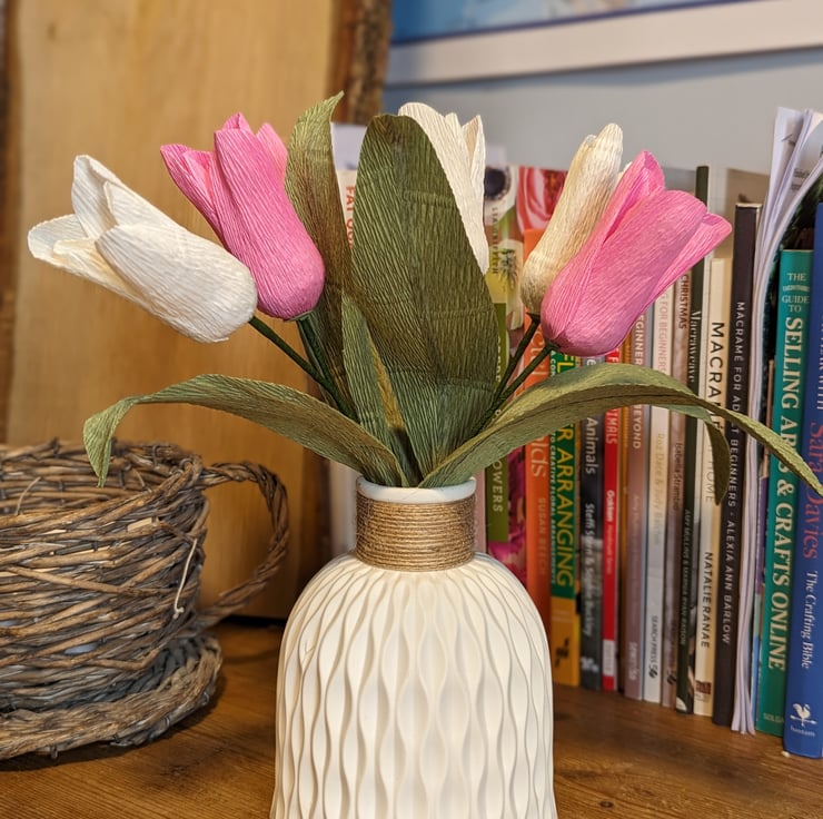 These stunning tulips are made from Italian 180gm crepe paper and are a timeless addition to any space. Lovingly handcrafted with care, each tulip is unique and made with vibrant colours and mimic the beauty of real flowers. These are perfect for adding a pop of colour to your home or as a thoughtful gift for someone special.