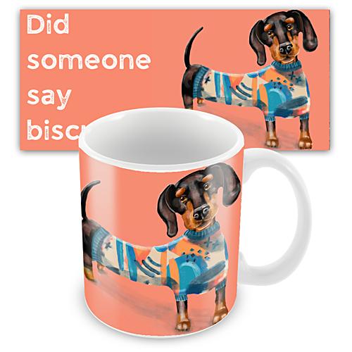 This Mug would be perfect for any dog lover and especially those who have a soft spot for Dachshunds and biscuits.