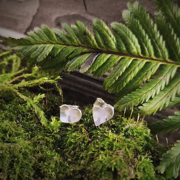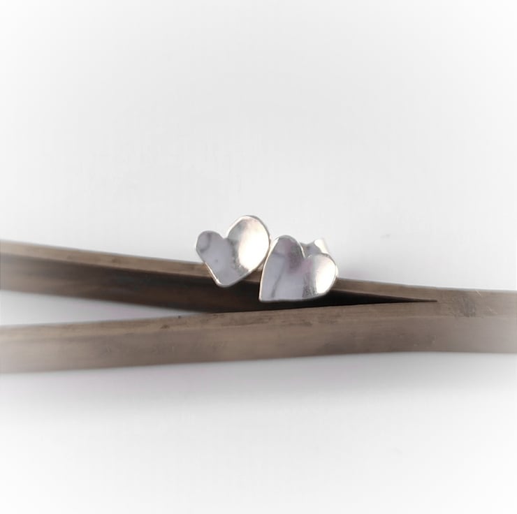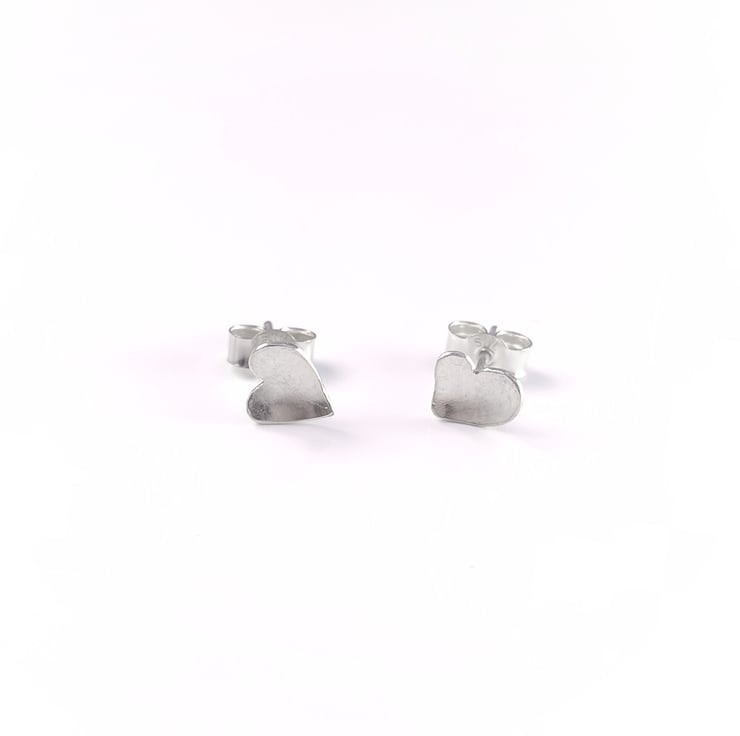Small, slightly domed sterling silver studs with rounded earring scrolls