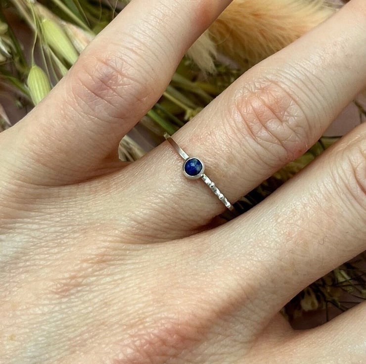 This ring was inspired by the deep, calming hues of lapis lazuli — a stone known for its connection to wisdom, truth, and inner peace. I wanted to create a delicate piece that brings a little serenity and strength to everyday life.