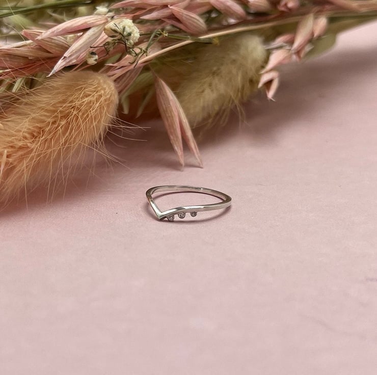 Wishbone Trilogy Ring Size - F.5 (UK) - Handmade, Sterling Silver, CZ