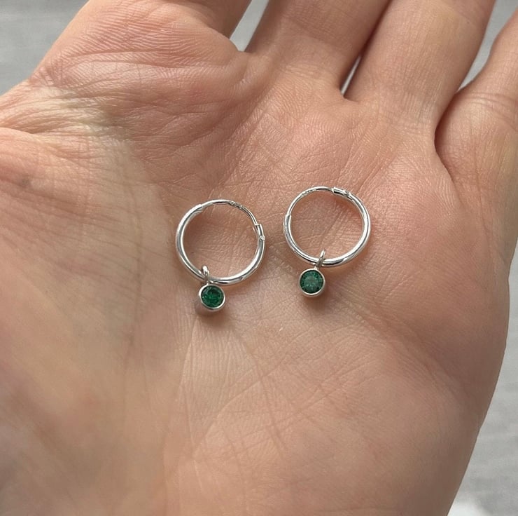 The Emerald Green CZ Petite Hoop Earrings are a beautiful way to bring a touch of vibrant elegance to your everyday look. Made from sterling silver, they feature stunning emerald green cubic zirconia stones that offer a bold pop of color, evoking feelings of renewal and growth. The petite hoop design is simple and elegant, giving just the right amount of sparkle and sophistication without being overwhelming.