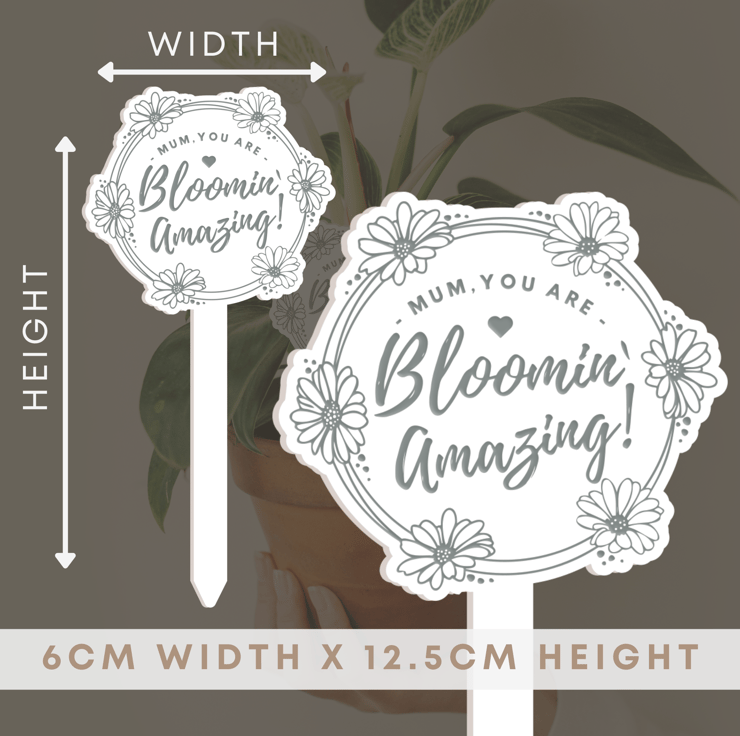 Surprise your extraordinary mum with our "Bloomin' Amazing" engraved acrylic plant plaque, the perfect Mother's Day gift that celebrates her nurturing spirit. Show your gratitude and appreciation for all she does with this unique and meaningful gesture. Let your mum know she's not just a mum, but a bloomin' amazing one!