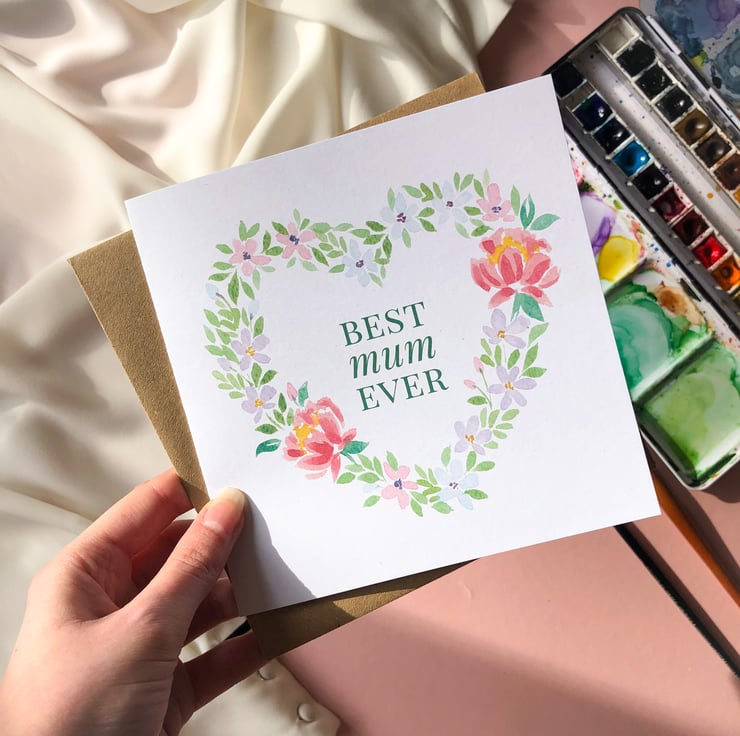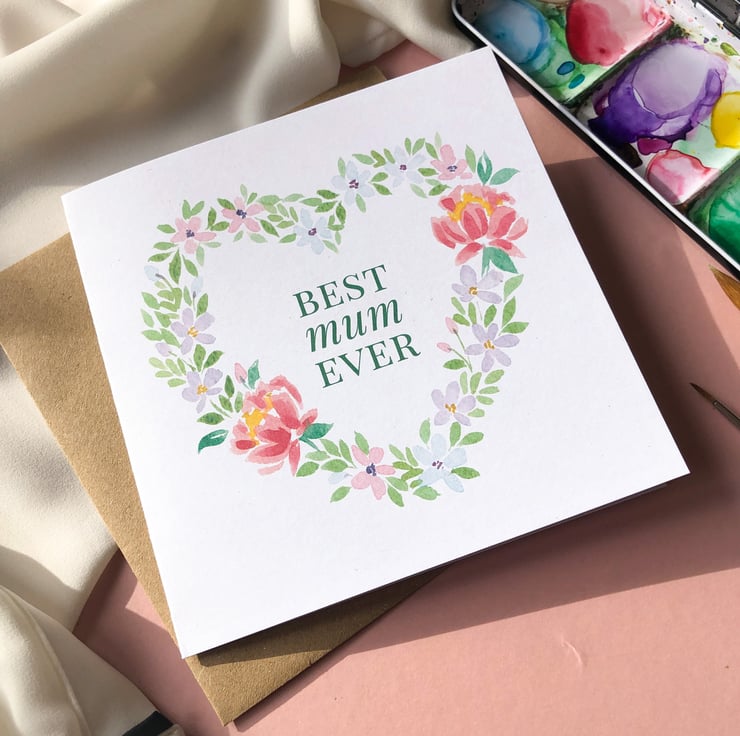 Send some love to your Mum with this floral ‘best mum ever’ card, featuring a heart made up of flowers and leaves!