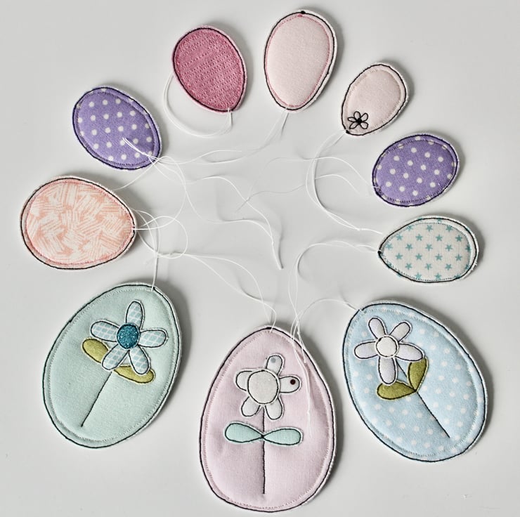 Pretty fabrics sewn into egg shapes.