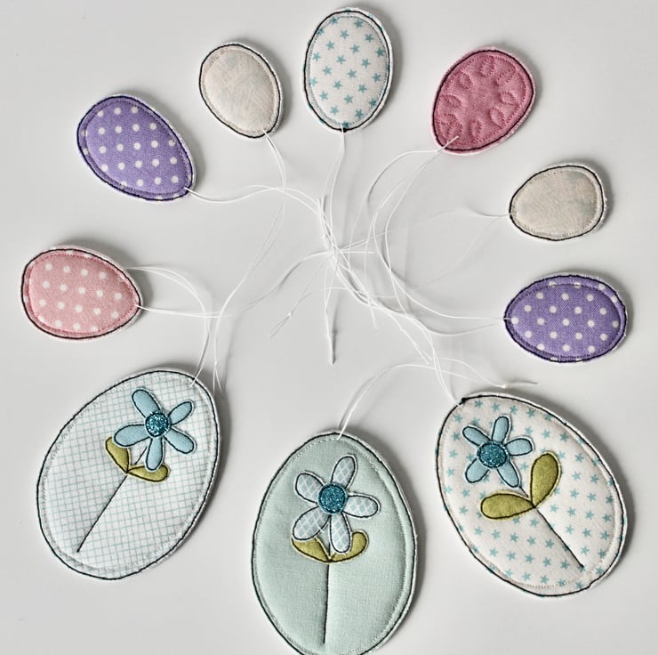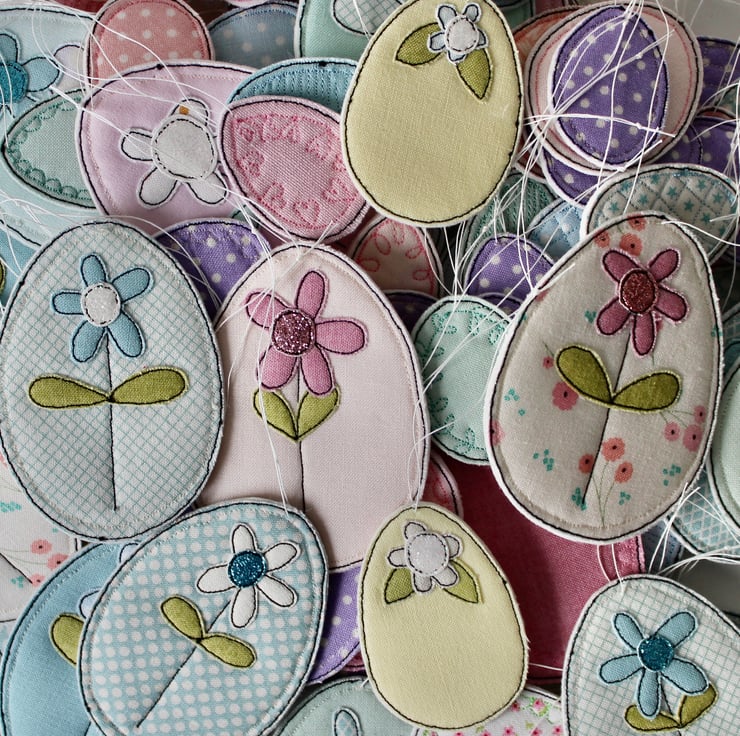 Pretty fabrics sewn into egg shapes.