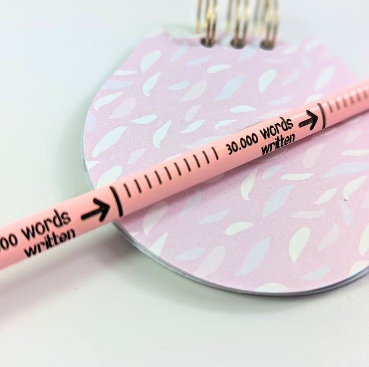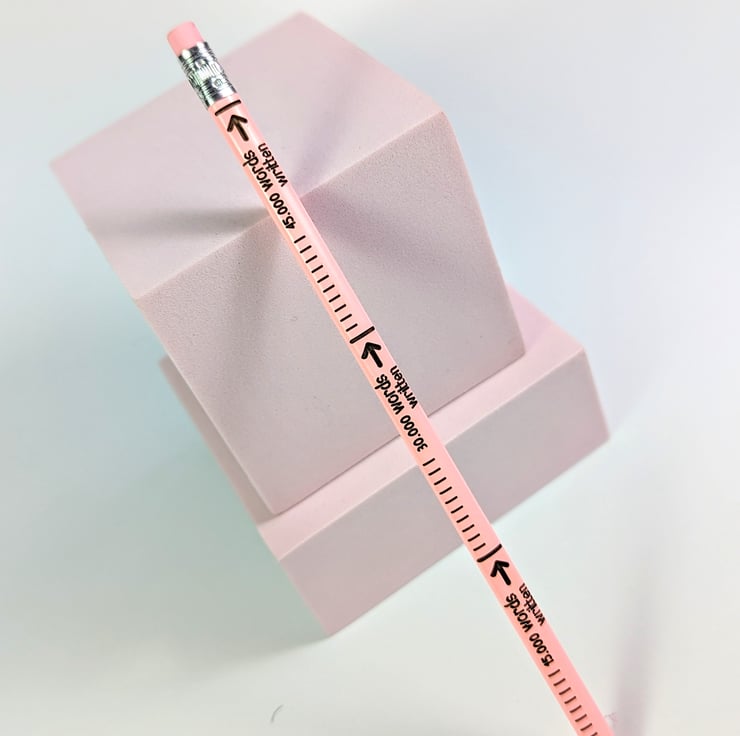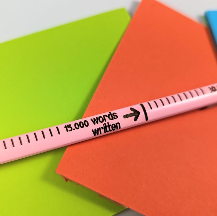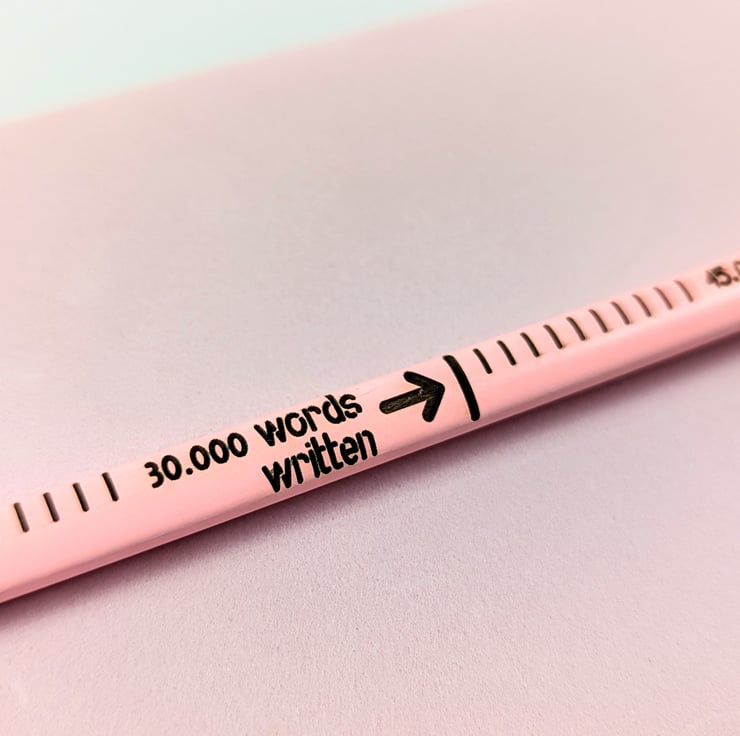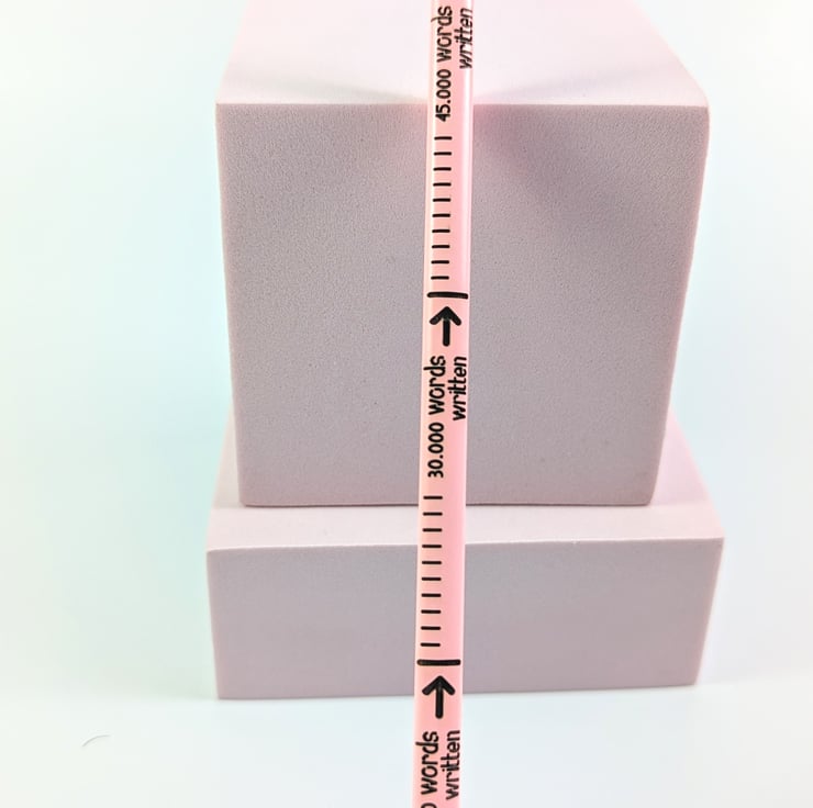 This article is a quality-finished, laser-engraved word-counting pencil with an eraser on the top. The pencil comes unsharpened and it's a normal HB pencil, it doesn't have a colored tip. The pencil features a word-counting engraving that allows you to count how many words (in the English language) have you written. A normal HB pencil can write between 45.000 to 50.000 English words. You can engrave the back of the pencil with your name or company name or any text you want for a small extra fee.