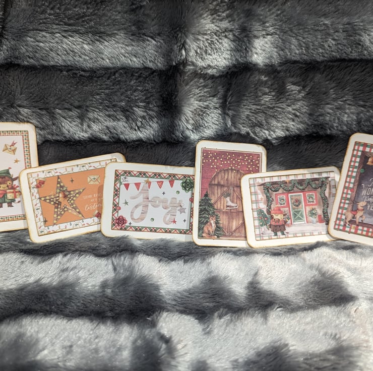 Pack of 6 Christmas gift tags, each with a different Christmas theme, rounded corners