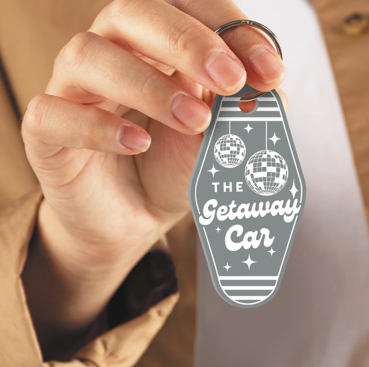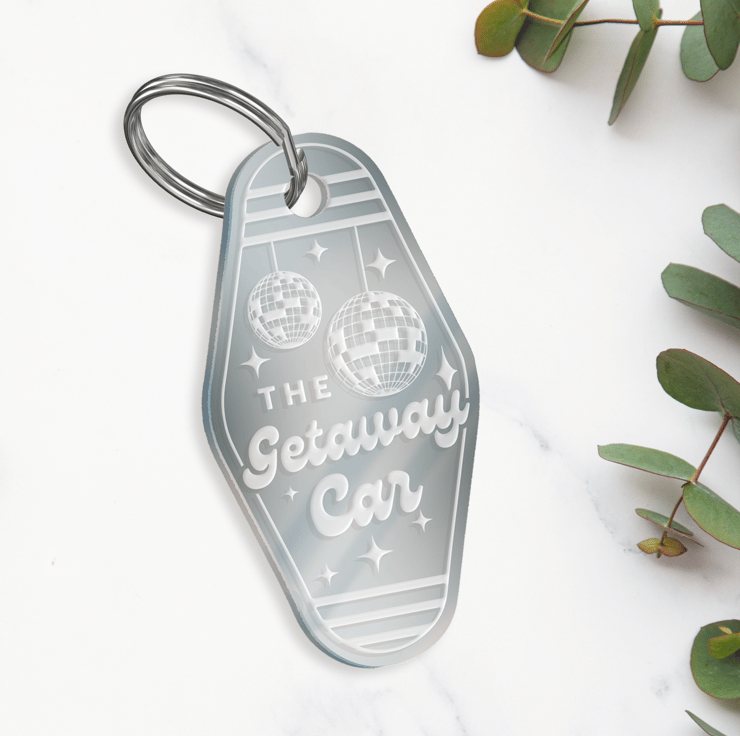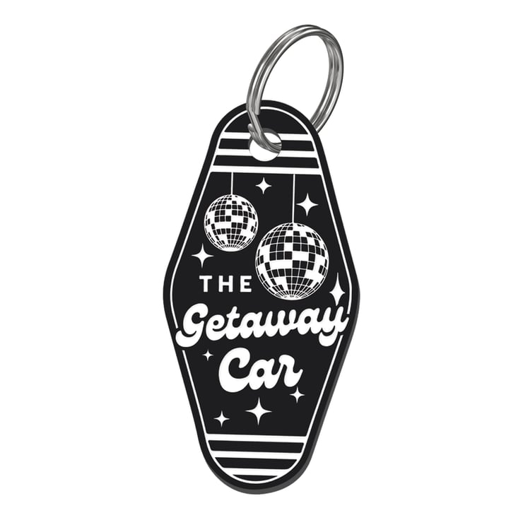 Indulge in the charm of a bygone era with our 'The Getaway Car' Acrylic Keyring. Inspired by timeless lyrics, this vintage motel-style accessory adds a touch of wanderlust to your daily carry, making it an ideal gift for music lovers and those who cherish the call of the open road.