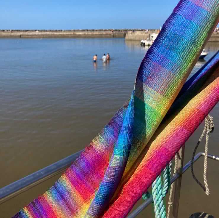 I love codes hidden in weaving- there's a great tradition of weaving hidden significance in to fabric. Fibonacci gradients are a constant theme in my work and this piece creates iridescence, an infinite interaction with light
