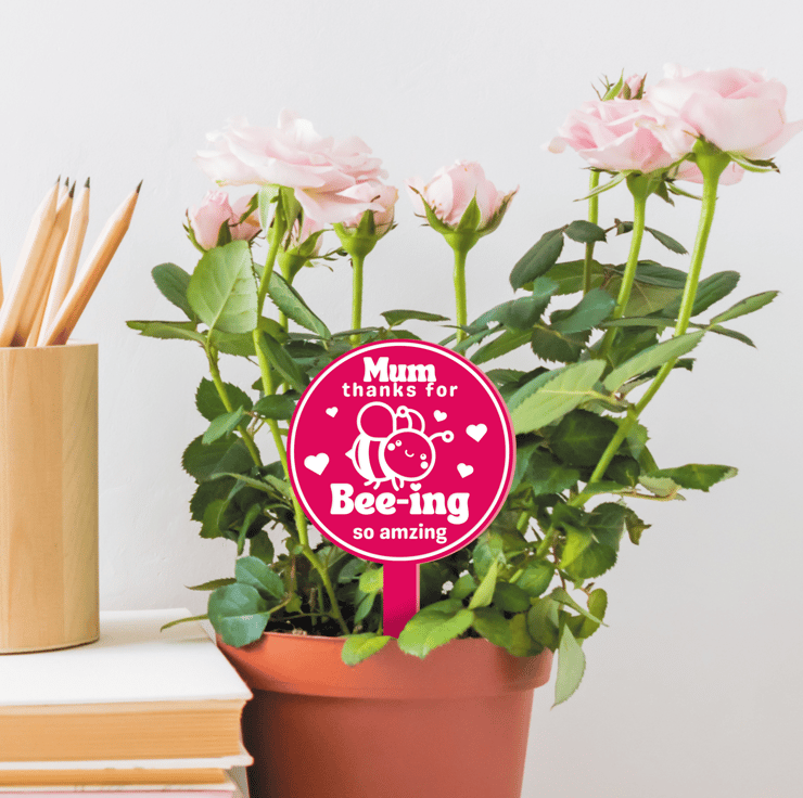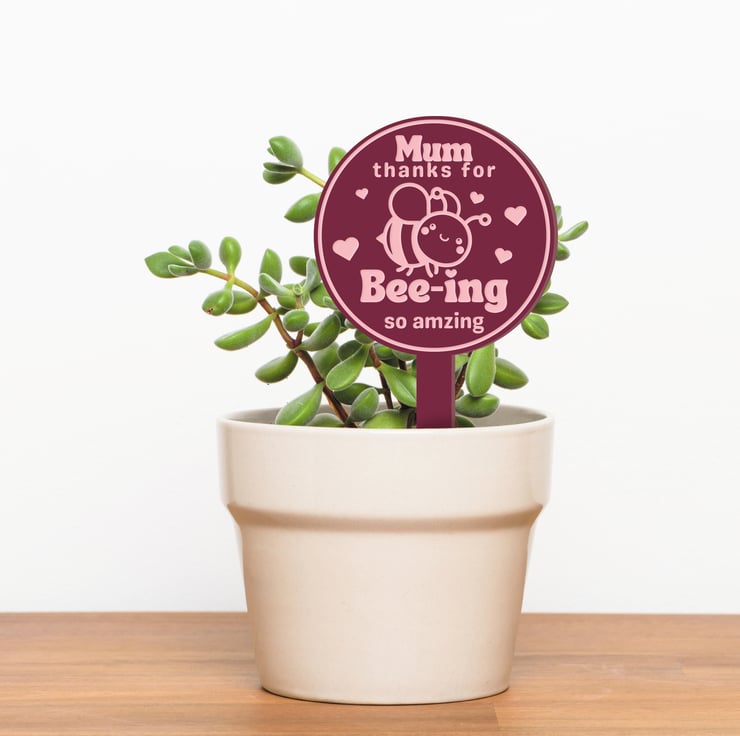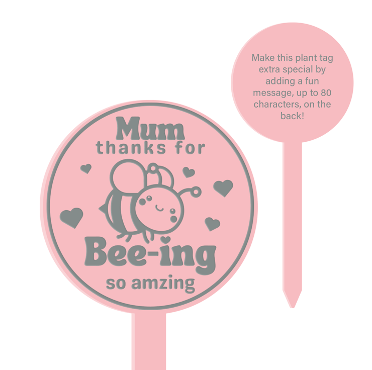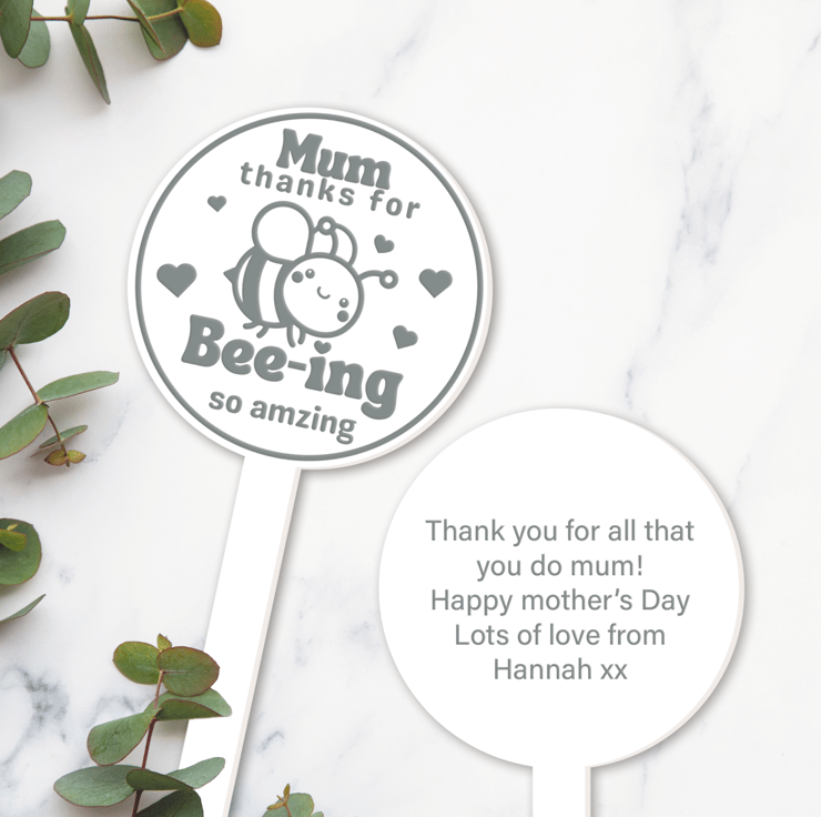 Express your gratitude to your incredible mum with our "Bee-ing Amazing Mum" engraved acrylic plant plaque – a charming Mother's Day gift that celebrates her uniqueness.