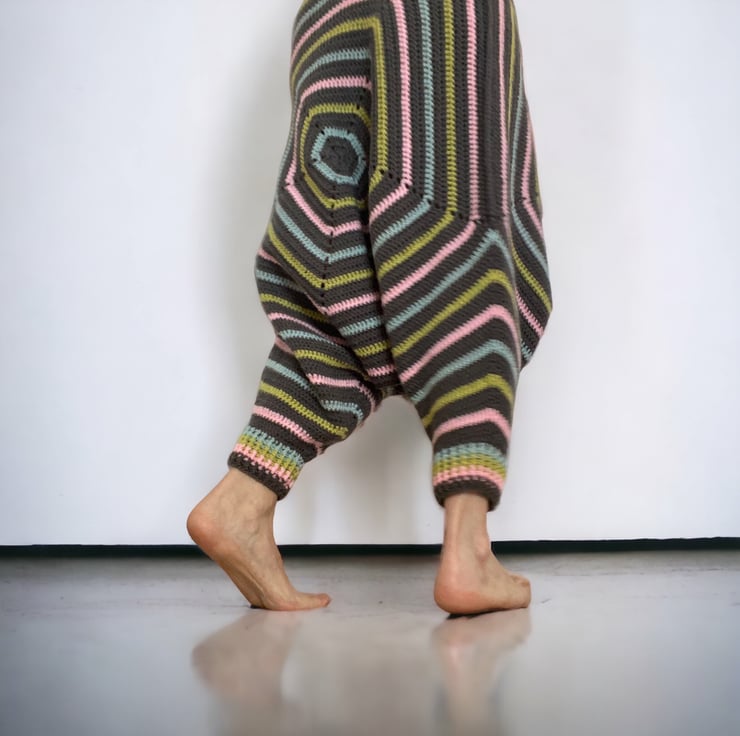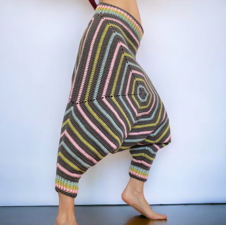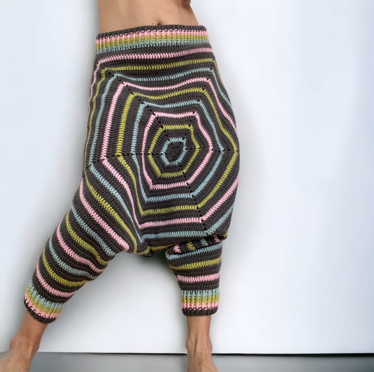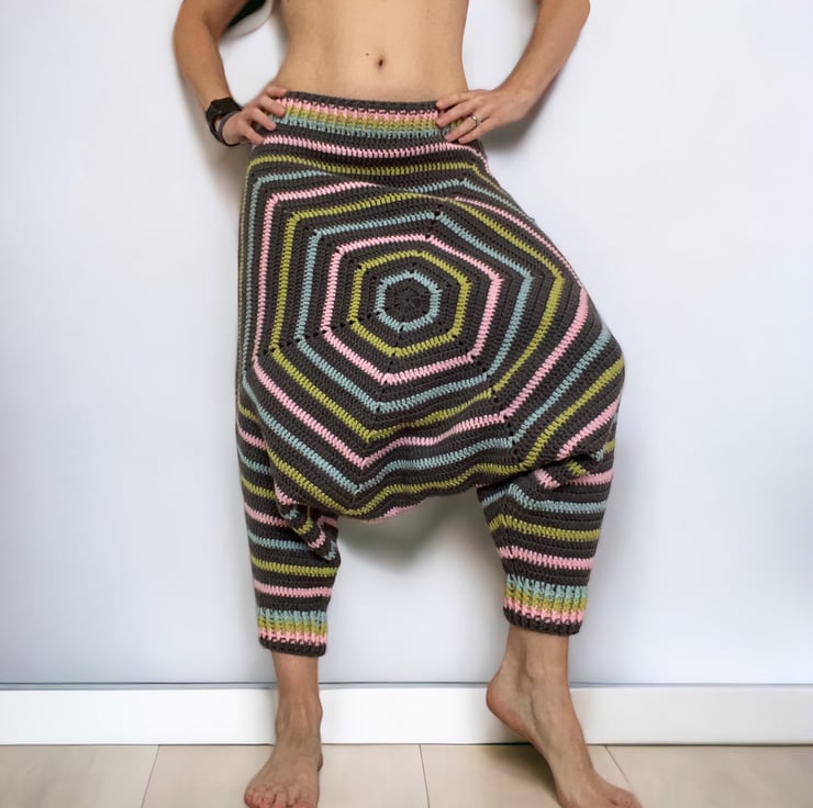 Handmade crochet harem pants.
