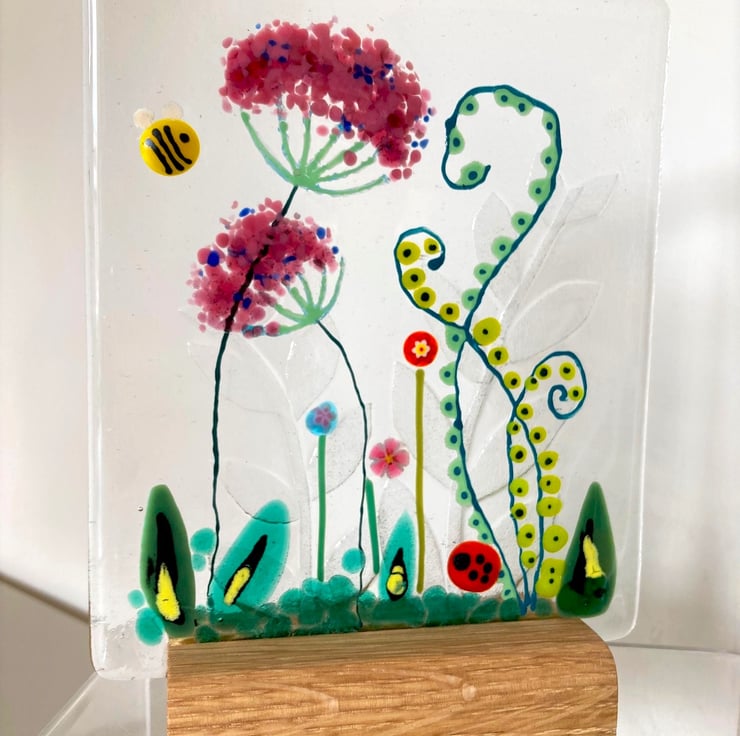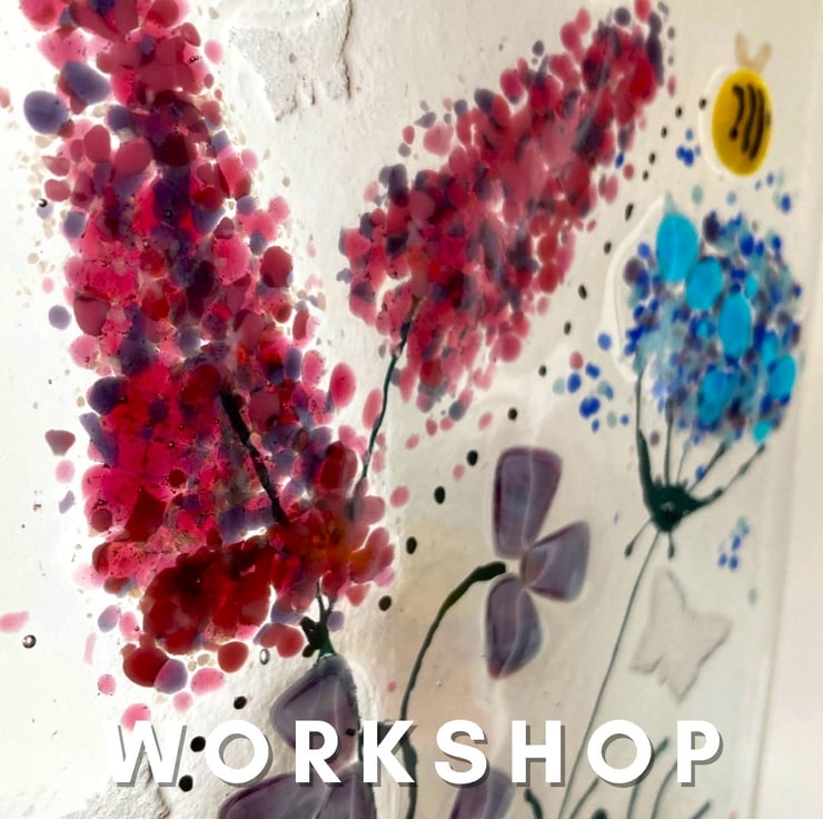 In this workshop you will create a beautiful glass panel which you can decorate with your own floral design, I do give examples and show you different ideas to get your ideas flowing! You will learn how to build up your decorations by using glass pieces, rods, glass paint and frits (crushed glass). You will also get the opportunity to learn how to cut glass too if you wish!