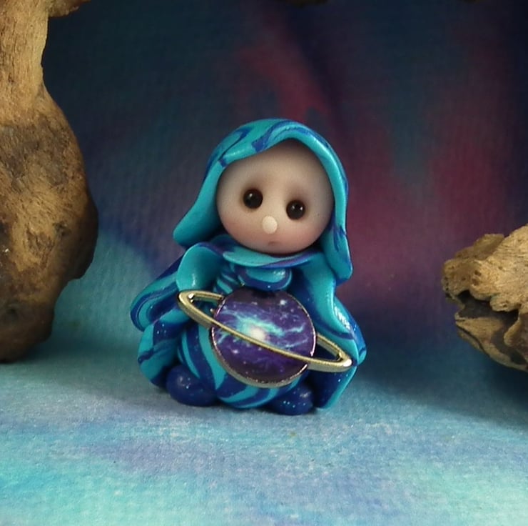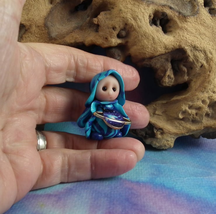This is a 'one of a kind' creation having been entirely handmade without the use of moulds here at my studio on the Sussex Coast. Modelled with artist blend polymers, blushed before sealing with lacquer, Uno has sparkling black onyx eyes and celestial robes. Uno the Astronomer Gnome is just one and a half inches tall.