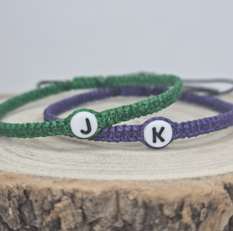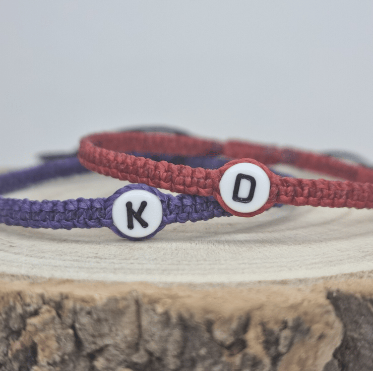 These beautiful initial charm bracelets are made from high-quality Brazilian waxed cord – resistant to fraying and ultraviolet exposure. They are also washable and the vibrant colours do not run.