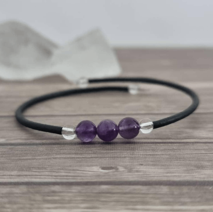 Featuring Amethyst (6mm) and Clear Quartz (4mm) accent beads.