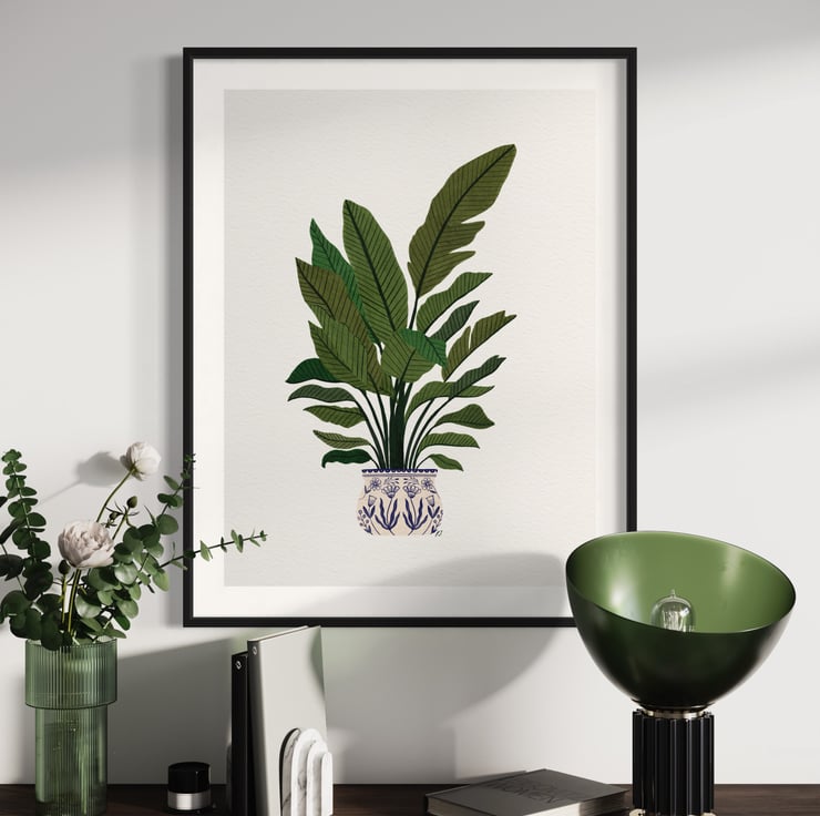 This stunning A4 gouache art print on archival matte paper showcases a gorgeous Birds of Paradise Plant illustration, perfect for any lover of botanical plant illustration art prints.