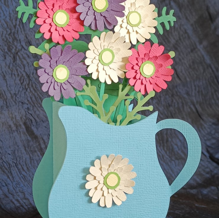 This pretty 3D Jug of Flowers makes an ideal Mother's Day, Birthday, Thank You or Get Well Soon Card to brighten someone's day.